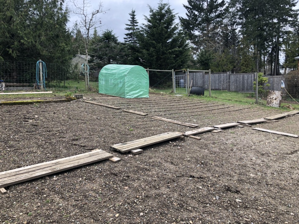 This hoop will likely get the 839 Sandercock and be grown downhill towards the centre boards. We will install the bigger 20x10x7 new hoophouse in the lower half of the pumpkin patch and it will start 2 plants back to back. Each plant has its own quadrant of 875 square feet and we will grow 3 competition plants plus 2 prizewinner plants will share one growing spot.