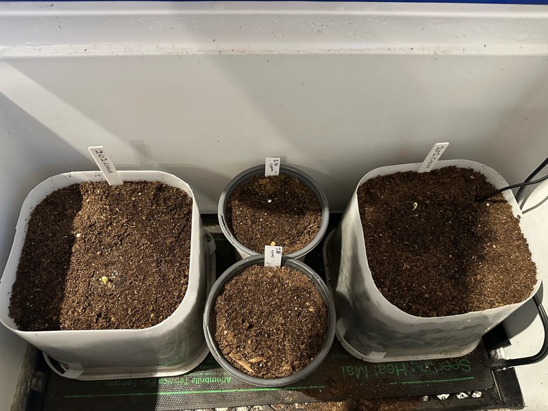 Watermelons have sprouted. I plant them on their sides about 3/4� down. Most of the time that lets them shed their coats. I don't file or soak them.