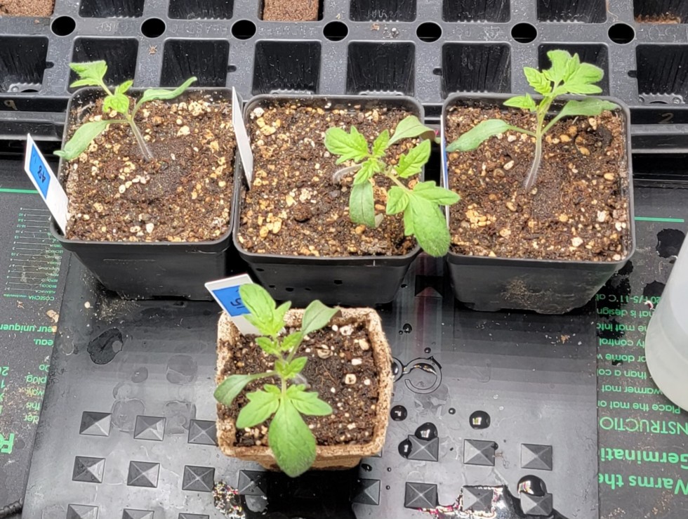 Note, the four seedling in the image will go straight outside this weekend. No hardening whatsoever. Not going to baby them as the others that were much smaller with even cooler night temps did perfect.