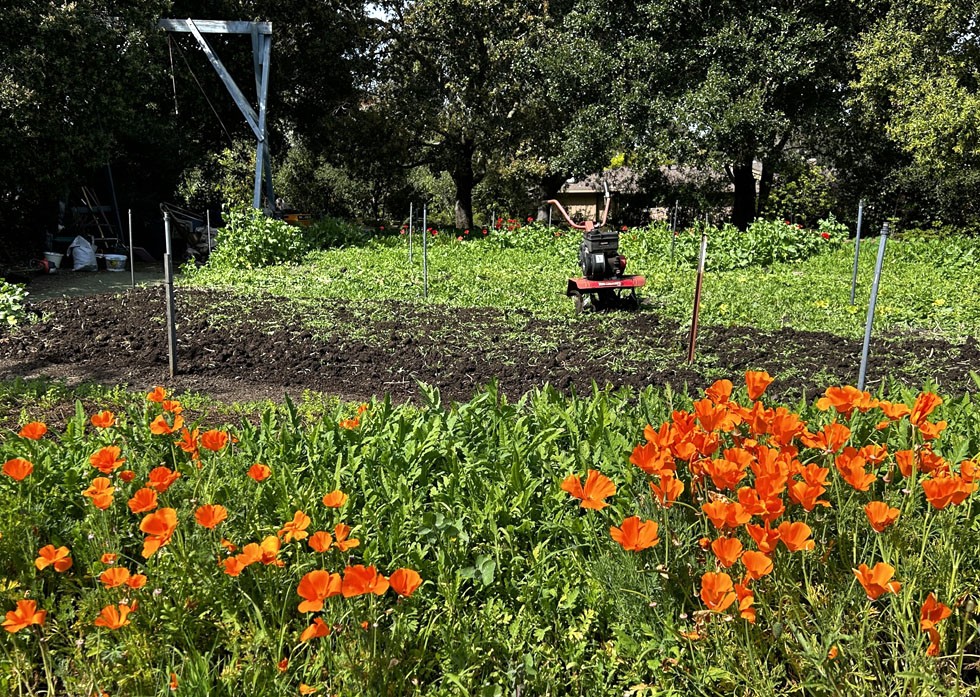 Don't Cry for me � The California poppies along the perimeter of the patch look aghast as their red brothers are mowed down and tilled in. Hopefully, their sacrifice will not be in vain...