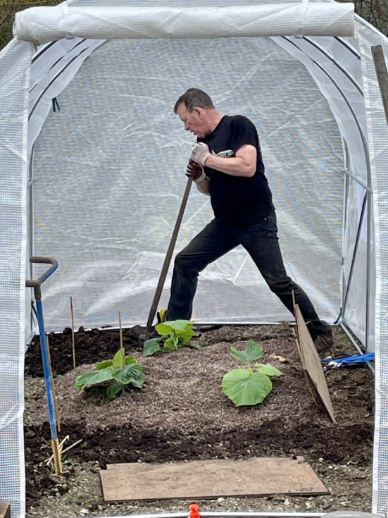 Digging in some final amendments and fluffing up the soil before I add a few walking boards in the right spots. Nice to be planted early, I hope the Saanich Fair considers adding GPC status to that longstanding giant pumpkin contest in Victoria on Vancouver Island.