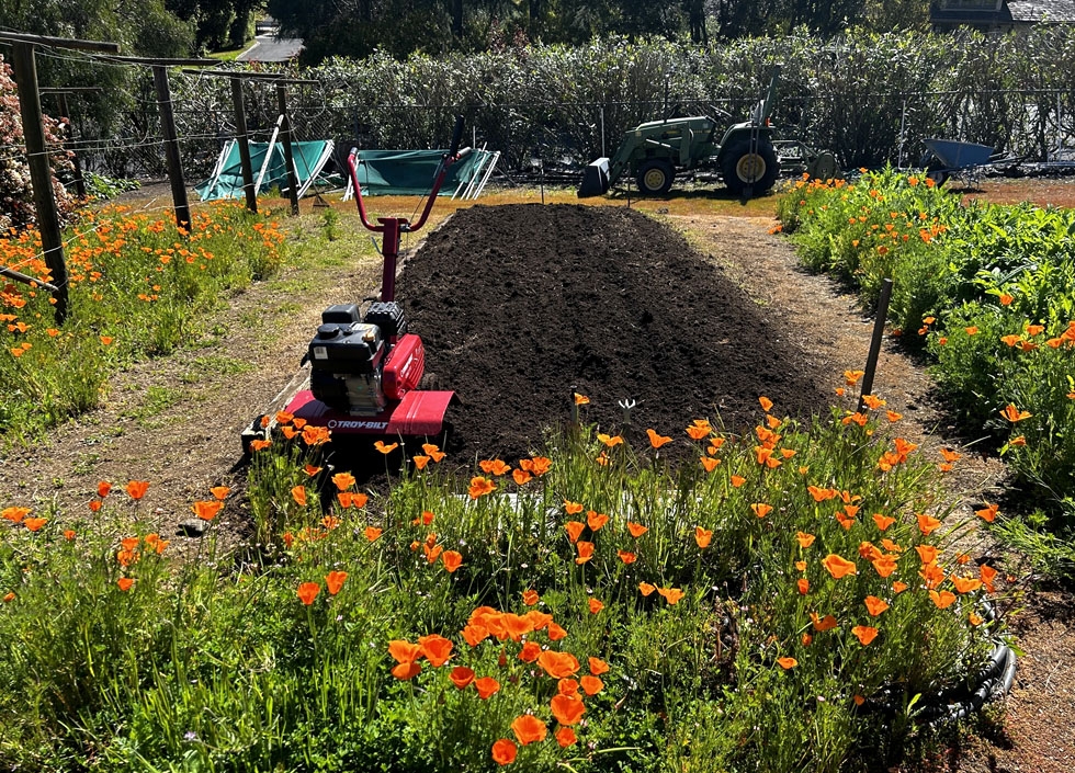 Tillin' in the Shadow - I tilled up a new spot for the tomatoes in the half-light of the eclipse. Here's a shot of the tomato patch right at the peak of the eclipse in my area. (about 40%) The sun clearly dimmed for about � hour which helped cut down on the sweat factor. I could use one of these eclipses every day...