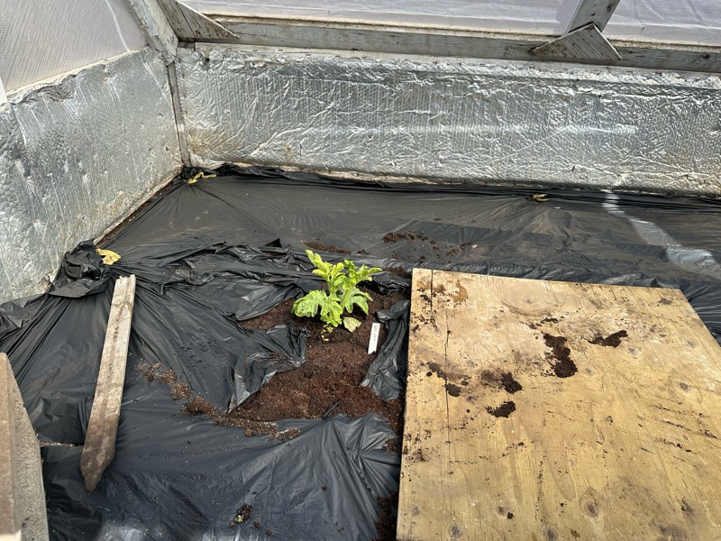 Transplantation of one of the melons. Hopefully it smartens up a bit. Looks a little tired.
