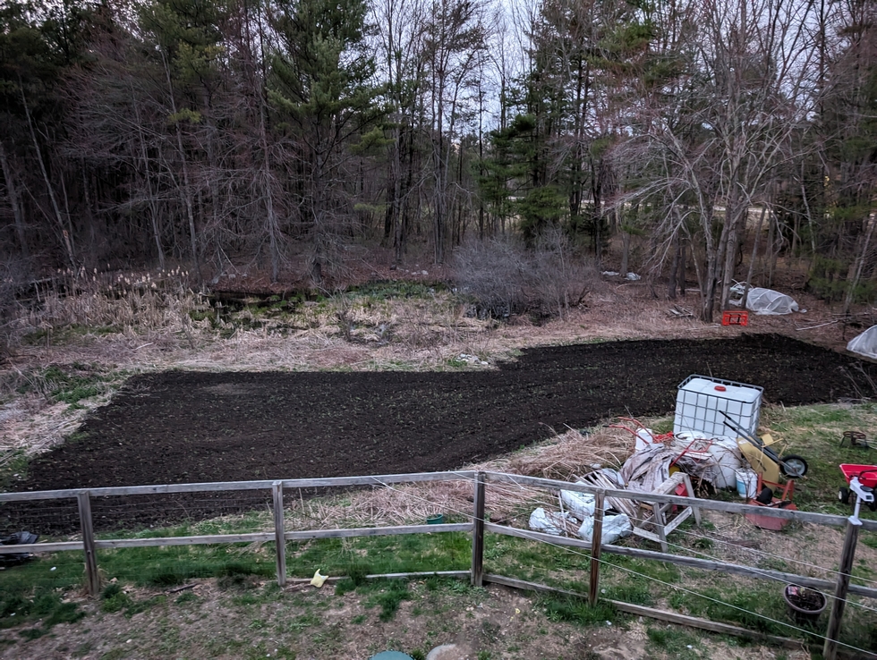 Got the soil amended and tilled. Soil test was done in March with Logan Labs and figured out the amendments using worksheets from the Intelligent Gardener book. Amendments included: Urea, Alfalfa Pellets, Sulfate of Potash, Borax, Molybdenum, Manganese, Cobalt, Greensand, Rice Hull (for Silica), Kelp Meal, Agricultural Sulfur.