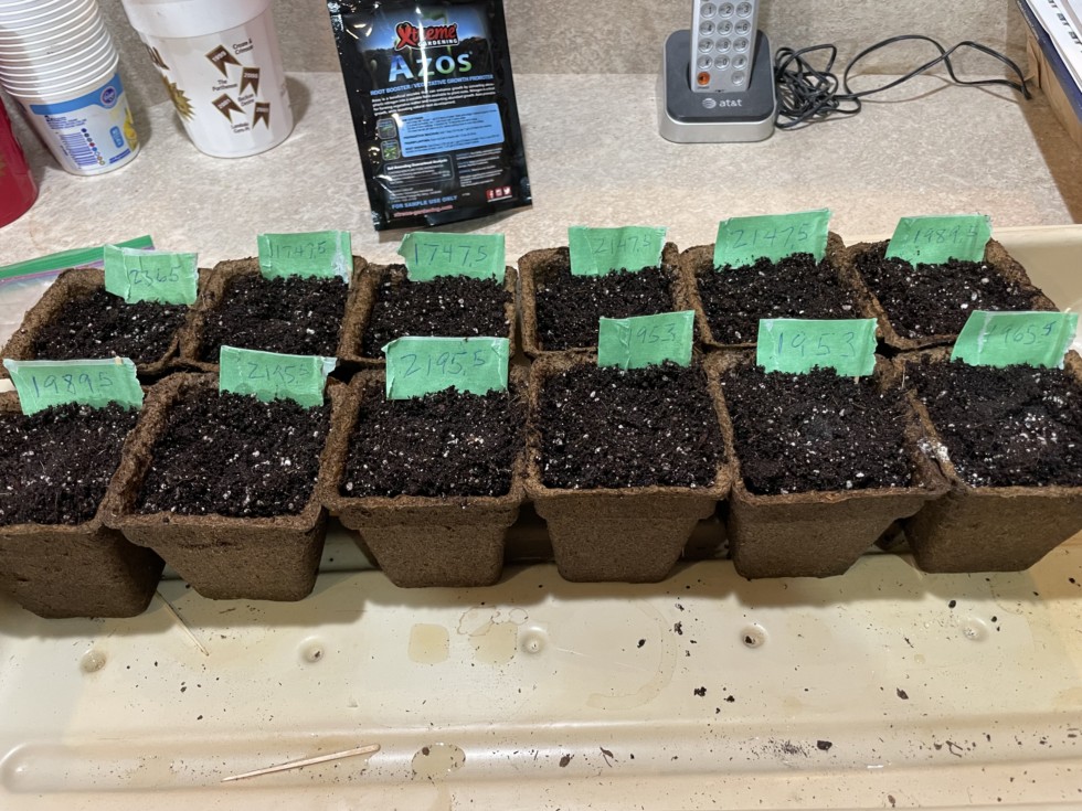 So last night I sowed my AG seeds into cowpots after soaking them in water with Humic acid for 2 hours. The seeds were lightly sanded. They are in Black Gold Natural Organic Seedling Mix, to which I have added Mycos, Azos & Trichoderma, and then some extra Azos right on the seed. I placed them in my egg incubator at 84 degrees & 85% humidity.
