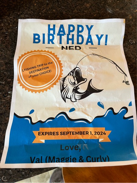 Val's entry for wife of the year ! Thanks Val, and a great choice. We will have some fun. Love you.