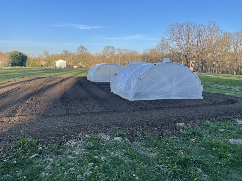 Had a good day of drying out today. Managed to till, get cables in and hoops up this evening.
