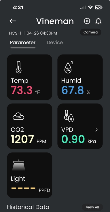 What's your VPD? Vapor Pressure Deficit: the difference between the amount of water vapor that is in the air and the maximum amount of vapor the air can hold before it is saturated. As the temperature rises the air can hold more vapor. As it falls it can hold less. Ideally when we are growing plants we want to provide them with a VPD between .8 & 1.1. I had never thought about this before I started learning about CO2. I did know that young plants like warm humid conditions. Now I have a target to shoot for!