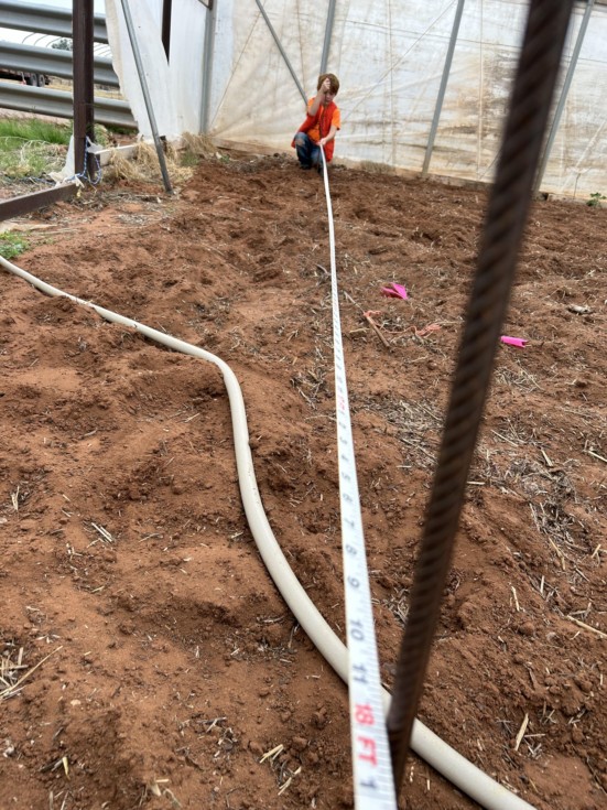 Measuring out the 18 ft side that we split into three 6 ft sections