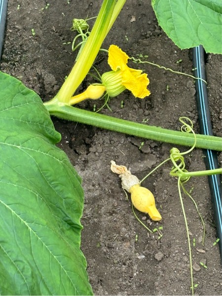 The 2 nd female opened on the 2147 today , its at least 16 ft out , with alot of side vines behind it , but the position in the gh is not ideal as far as getting the pumpkin out goes