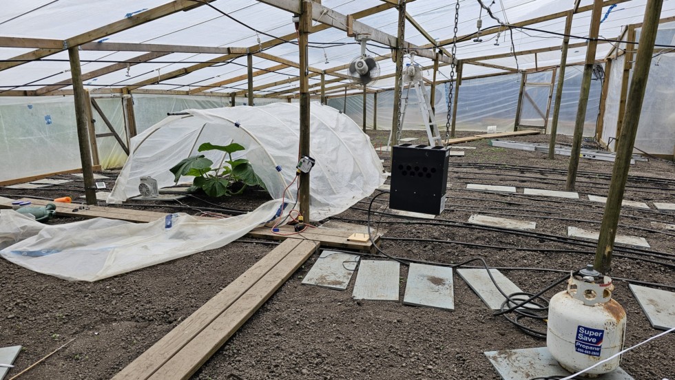 I ran out of cylinder tank CO2 feeding the small hoop so I started up the propane CO2 geneartor. I ran it for 7 hrs and it couldn't make enough CO2 in such a large greenhouse (2000 sq ft). Then I got a brainwave at 3am !!! Ya, I know , we're sick !!
