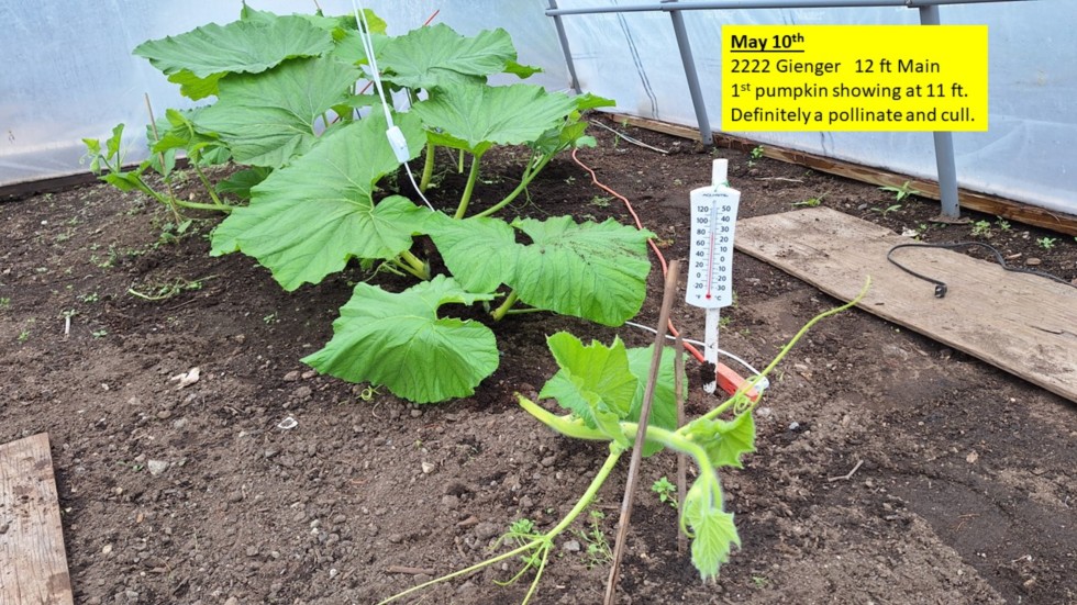 Shown is the 2222 Gienger. Temps dropped to a chilly 45F for 4 hours last night. Put a double layer of poly on each of the four greenhouses for improved insulation. With 1500W Heaters, plus Heating cables and LED lights, the temp inside each was at 78F all night. Each Leaf node (on the main and secondaries) gets covered with a wad of drenched perlite filled Potting soil, when they hit the ground, to help both tap roots develop.