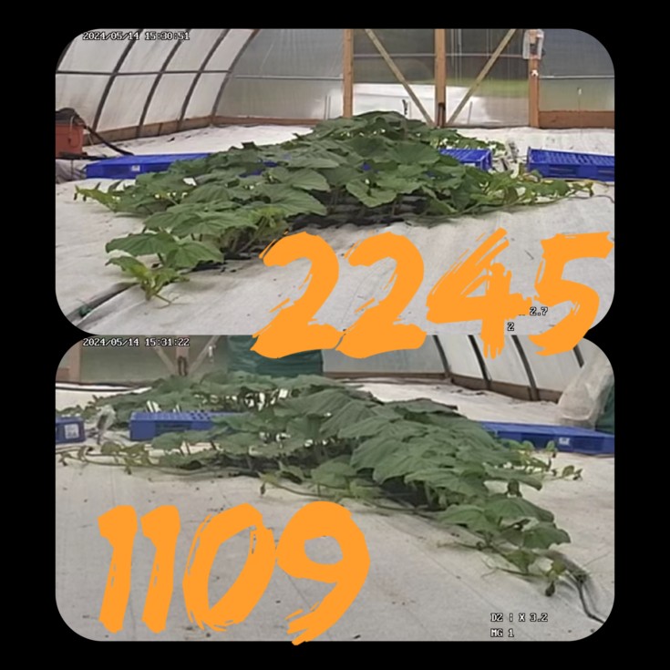 I do have a tiny pumpkin buried in the tip of both plants, so I should be pollinating in 10-15 days on both. Hopefully it takes, because I will be at the end of the greenhouse with both these pumpkins.