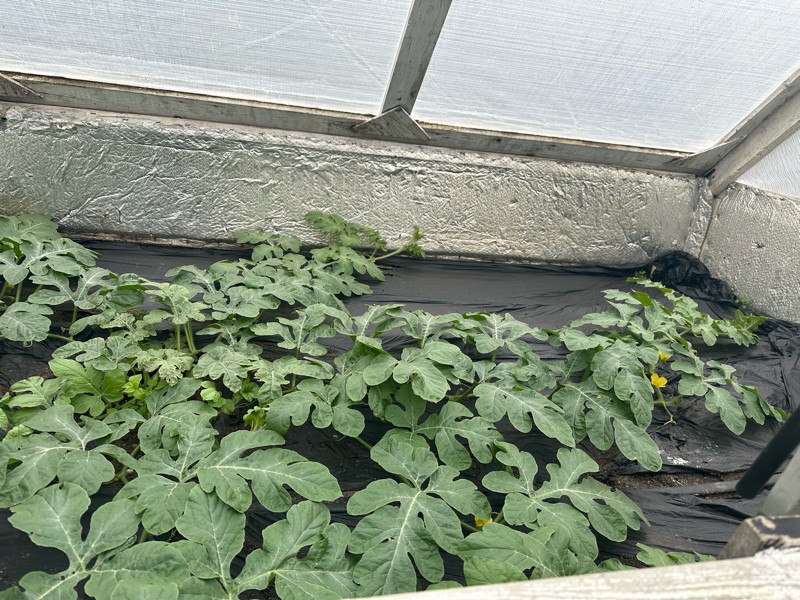 202 Crews watermelon. Hoping to keep it in the shack until next week. Just too cool to erect the next stage of greenhouse.