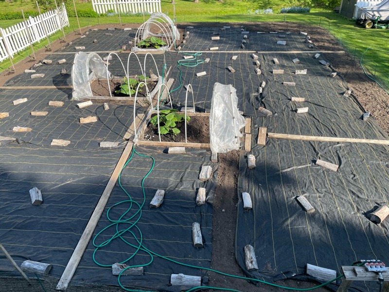 Our weather is slowly starting to turn better and we are slowly drying out. Plants are healthy and patch is weeded for the week. We set up temporary watering so we can help the young plants with the upcoming heat.