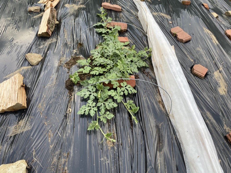 159.6 ciesielski JBD watermelon on 'Rampart' rootstock. I am pleased with how the melons are growing, they are ahead of schedule for some reason this year. I hope to get a mid June pollination, which I have never done before. I will have to try my hand at manually pollinating these. Normally the bees do it for me. The problem is that they miss all the early females. In late July and August the bees do a great job! There are so many culls, it is like picking cucumbers!!