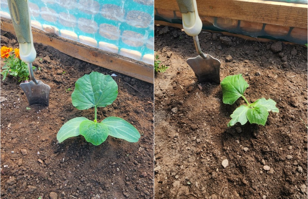 Bushel gourds transplanted this morning. 310 Marsh on the left & 470.5 Connolly on the right.