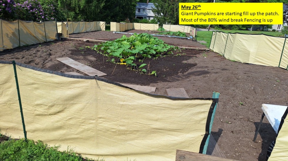 Took me 3 hours to get the (80% wind break) fencing up. After the last section goes up, I need to finish the 6 door's. Once complete it also does a nice job of keeping the woodchucks out, and rogue weeds from migrating into the patch. and....Pollinated the 2nd 'kin on the 2222 Gienger today, at 16 ft out as shown. Nice 4 lober. But I might go with the 3rd one that appeared at 20 ft out. This one should be ready to pollinate, on June 5th or 6th.