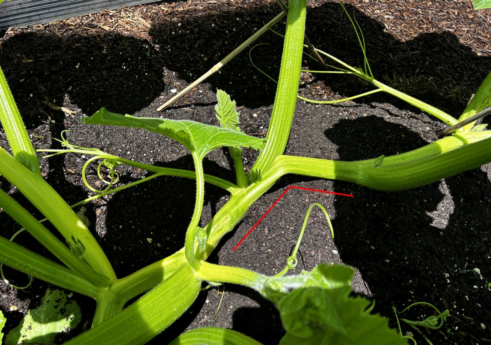 Kinky Stuff � The main finally landed � hard and leaving a serious kink in the vine. All I could do is build a little elevated landing pad to reduce the angle a bit. I used to think this was a real problem but the juice seems to flow through the constriction ok. What doesn't kill ya makes ya stronger...