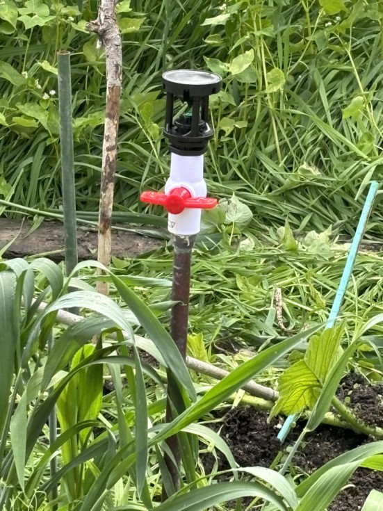 Wobbly sprinkler heads. Installed two with new valves. Prolly won't need these but nice to have. Setup two zones of over head misting lines and tested. These are plenty worth the efforts to fool with. Fixed some minor leaks and initially had a solenoid valve stuck open but it started working after a couple of minutes. Many many Pots are all set for water and filled with Proven Winners concoctions of all sorts.