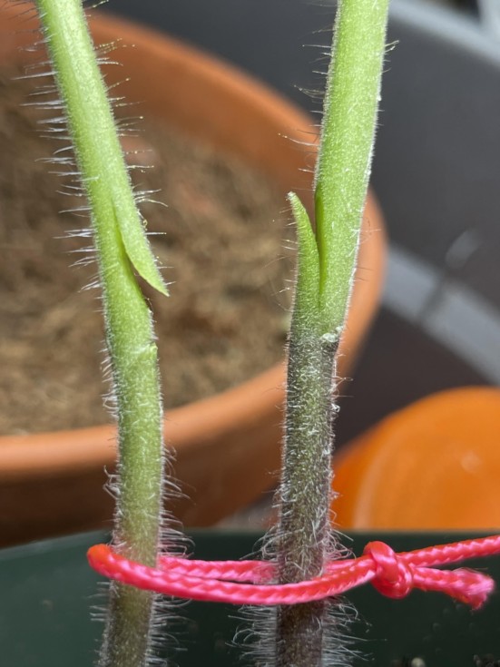As some of you know, I graft all of my tomatoes. I use the Approach graft technique. I tried topgrafting but my success rate topped out at 50%. With Approach grafting I'm successful 95% of the time. This pic show the scion and the rootstock cuts.