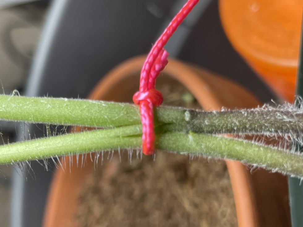 This pic shows the 2 plants meeting up & held by a slipknot.