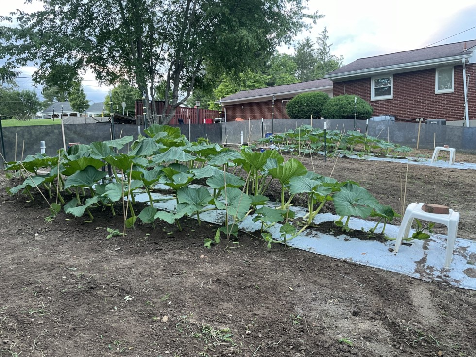 We have finally dried out nicely enough to catch up with the general maintenance of burying and weeding. The main Comp plants pictured here are on track with minimal storm damage. All fences have been mended. The goals for the season remain viable and within reach.