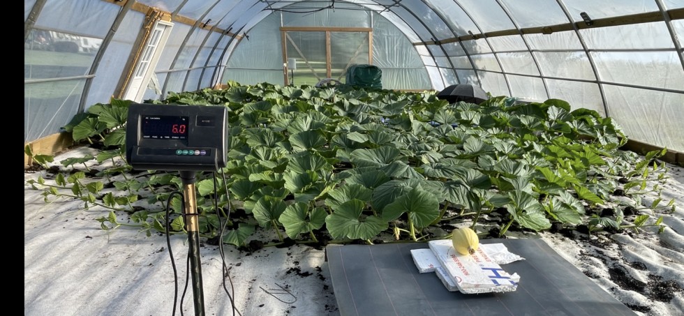 DAP 9. Scales have been placed under the 2245 and 1109 pumpkins. The 2245 Andrusz is the current heavyweight of the patch coming in at a whopping 7 lbs�. Hard to believe in 21 more days these guys will put on 500lbs, this is my favorite part of the growing season waiting to see how big they grow in just 30 days!