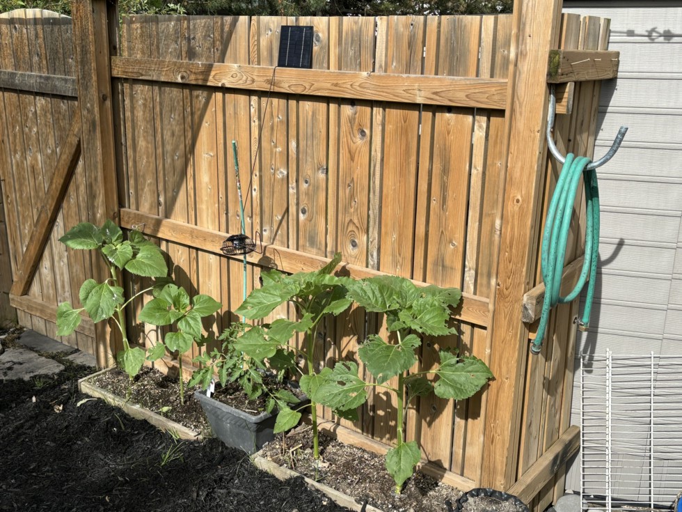Testing out solar USB fans for the Maters. First Tall Sunflowers about 24�.
