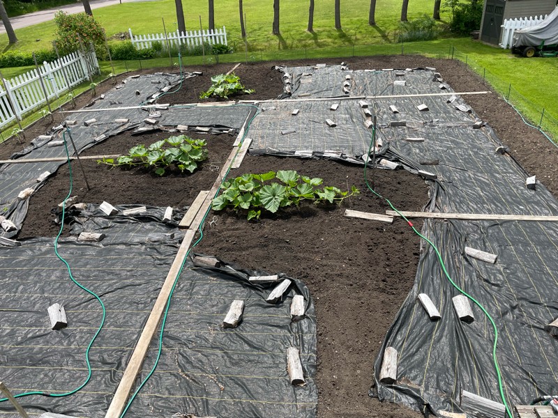 Happy first weekend of June. Our small backyard patch is starting to dry out and the weather has finally warmed up for a minute. We are starting to move the weed block material back which means the plants are growing.
