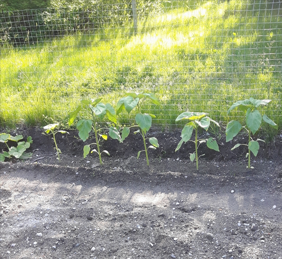 These are my giant sunflowers, they have been doing good despite the poor weather.