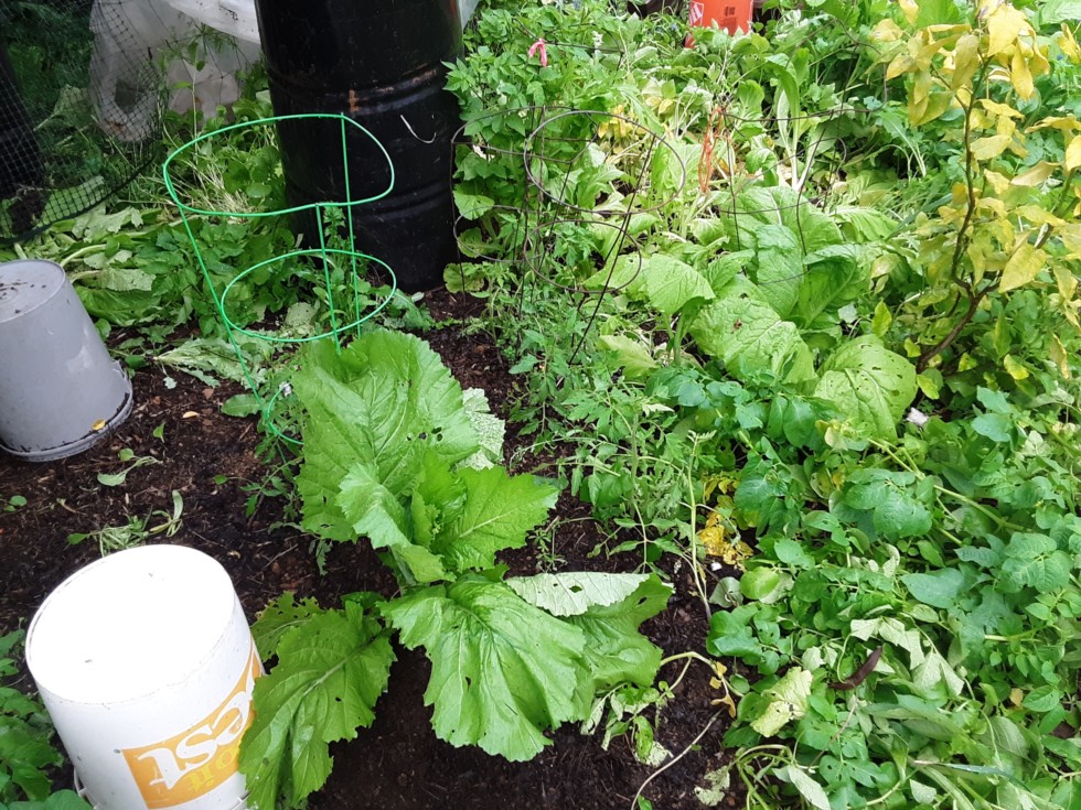 This mustard got planted at the same time as the tomatoes (a mistake on my part). Its enjoying this weather, clearly. If nothing else, I already grew a pb mustard plant lol. There's lots of baby worms in this spot where this mustard plant is... baby worms indicates good things? I think this could help my results later... ? I will neither till nor broad fork, its easier just to feed my youthful army of soil diggers.