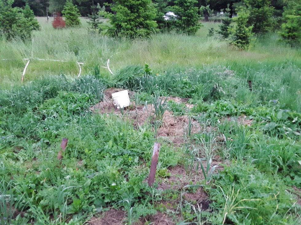 2024 Bushel gourd spot. This is the spot that grew 2200 lbs of pumpkins last year. Judging by the appearance of the weeds and the garlic, the rain hasnt washed all the nutrients out... Im gonna mow, do a bonfire, then solarize, then put up a hoop house mostly for wind protection, but also a bit higher temps at night.... pumpkins will do ok with 50 degree nights but maybe melons/ bushel gourds want 60 degree nights.