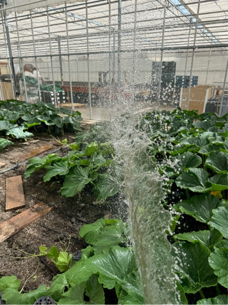 Every 7 days we water, by hand over the top of the last week's growth which is probably around 8 or 9ft. This is extremely important if you're growing indoors and using drip tubes. We need to keep the area that has just been buried moist in order to encourage those new roots.
