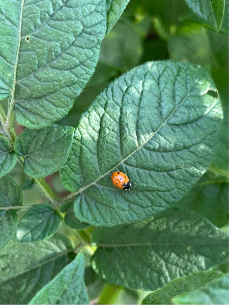 Have not seen many potato beetles yet. But there are a few lady bugs on guard duty.