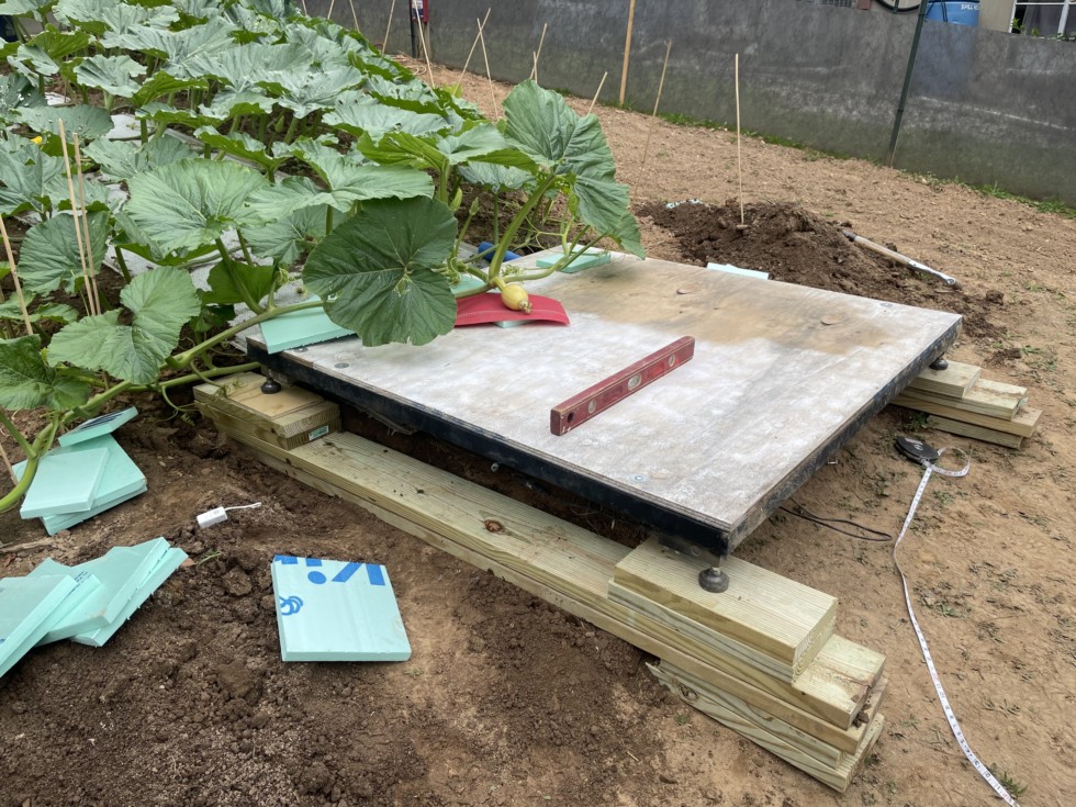 My patch has a little slope to it so a little excavation and a few 8x2's are used to get it right. Being level is very important for weight distribution and growth regularity. The scale is 5x5' which works well for my small pumpkins (sub 450").
