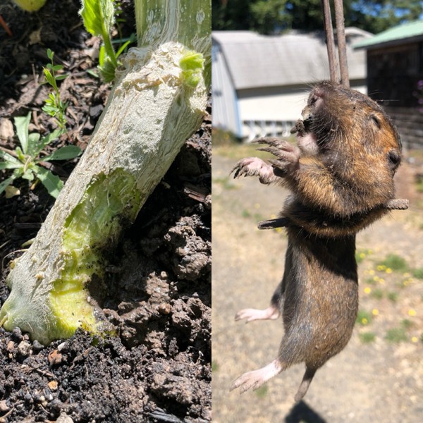 This is a first. My 1469 Young plant in the bonus patch was eaten by a gopher above ground. Got him but the damage was done.