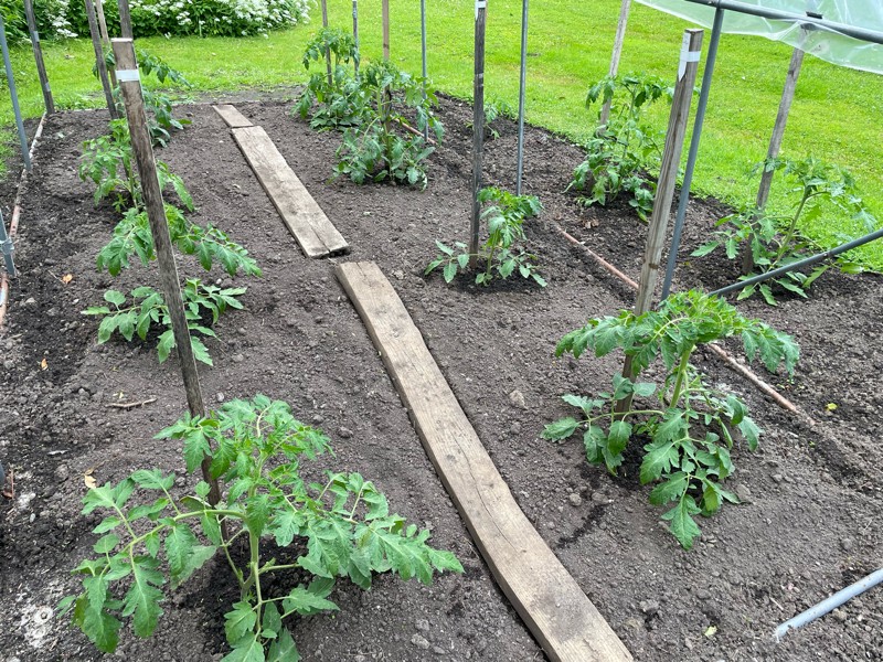 The giant tomatoes are starting to show some first truss mega blossoms. About a week away to try to pollinate a couple of these.