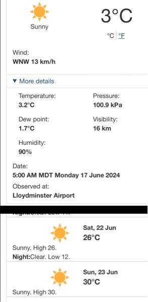 Couple of mornings with 3, which is optimistic as many a day I've seen frost on my windshield while they swear it's 2 and never went lower, and then the weekend is 30.