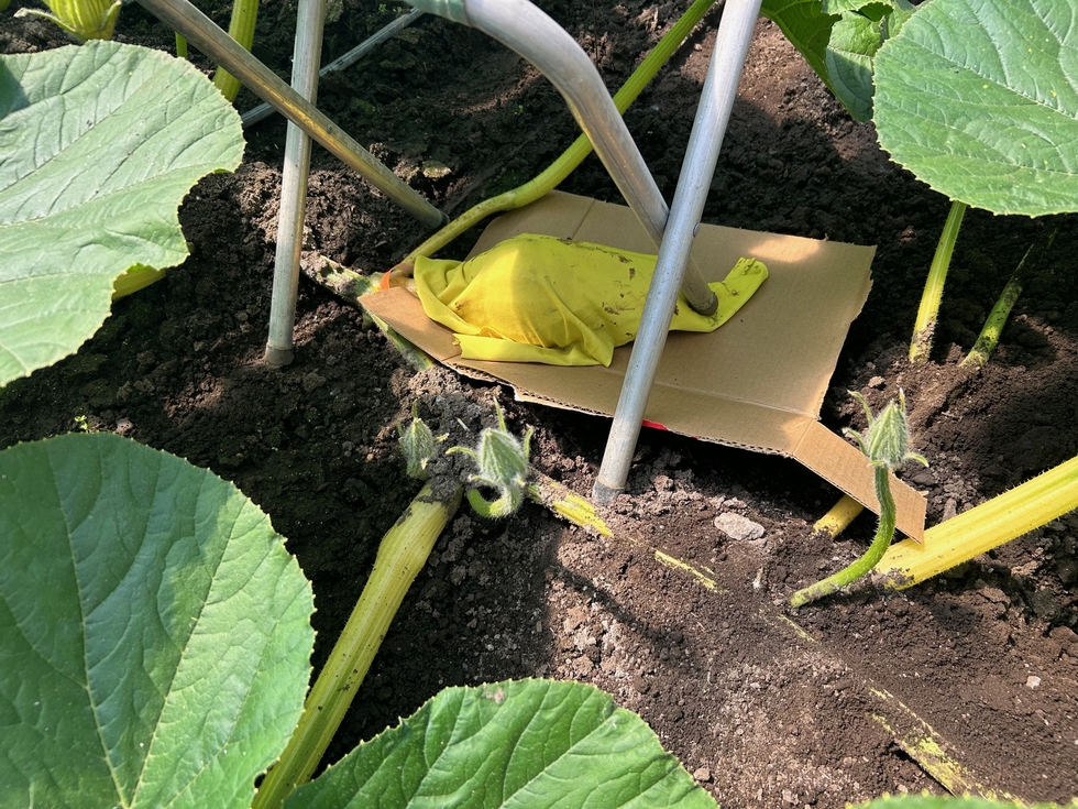 It is important to protect your fruit when you are moving it & positioning vines. I like to put a piece of cardboard under the fruit so it will slide easily while protecting its bottom. I also cover it with a piece of a t-shirt. Once I used an old towel & it scratched the heck out of the fruit. Whatever you use it MUST be smooth!