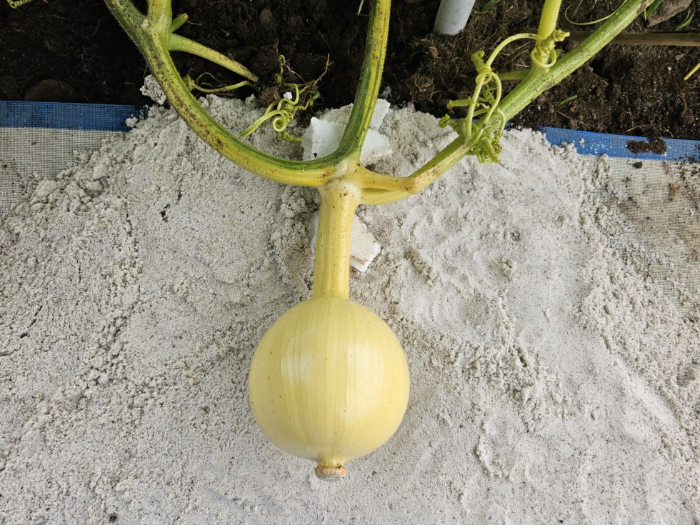 This is the 1832.5 fruit at 8 days old. It was crossed with the 1686.5 Stelts, and treated with 100 ppm of Florel at 48 hours post-pollination.
