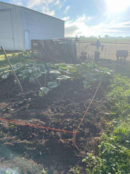 A new fuzzy photo of my 150 sf patch. I'm using the circle back vine technique so I can get the secondary vines from the main back into the patch. It makes for tight quarters and poor ventilation but this little patch has nothing around it to impede air movement. It also has a little shade in the late afternoon. It was tilled at the beginning of the season but I've been breaking it up again with a fork as I bury.