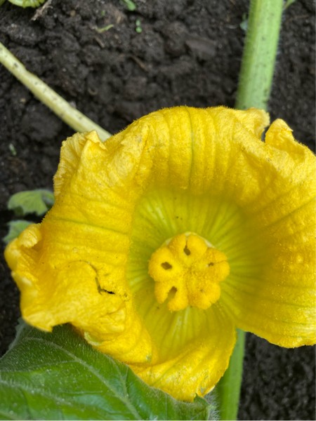 Three of my four plants have had successful pollinations. These pumpkins range in age from 20 down to 8 days. Until today, the only plant without a growing pumpkin is the 2214 Jutras. This flower was pollinated this morning. Fingers crossed