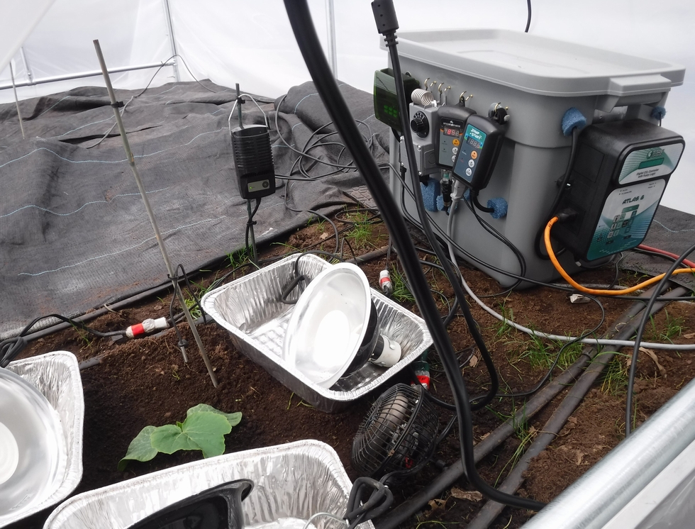 The large black cord that seems to be in the middle of the image is going to the CMH light that is located directly above the seedling to help add some heat and increase the photoperiod.