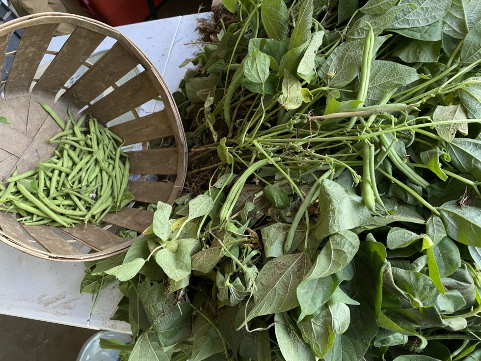I have to pick a lot of beans every year, so my trick is to pull the whole plants up. Once they're fully ripe I pull the plants and pick the beans off in the shade, standing up from my trucks tailgate or a table. It's much easier on my back and a lot more pleasant than being out in the sun I could pick the beans on the plants and get a couple crops, maybe two or three, but it's easier for me to stagger the bean planting every two weeks, green beans go in every time my sweet corn goes in. I feed the picked bean plants to the cows, so nothing goes to waste