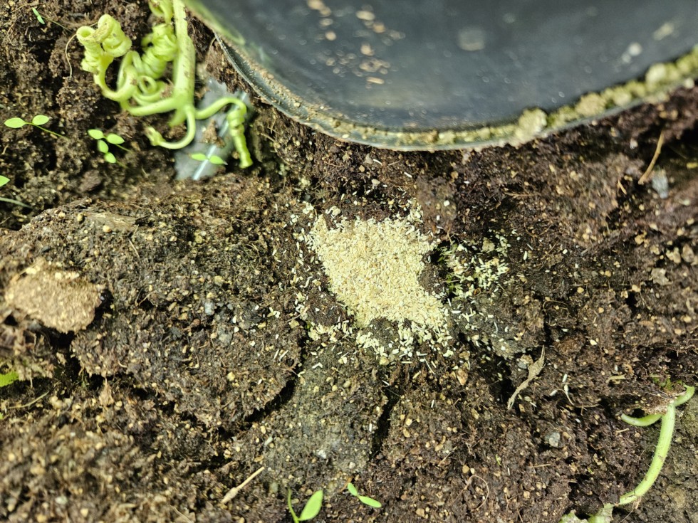 This is how you need to place aphidoletes momies. A wet spot under the canopy is ideal.