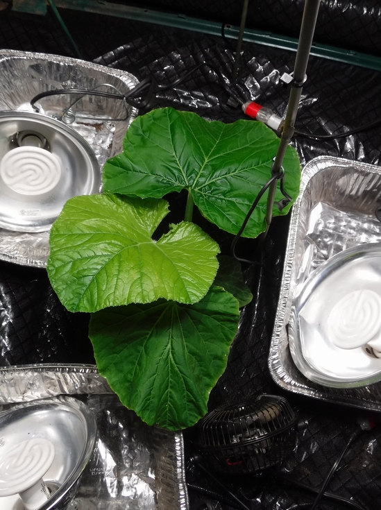 Just like last year this is another image what an iron deficiency looks like in a giant pumpkin plant. This image was taken at night under the artificial light as it shows the color distinction better.