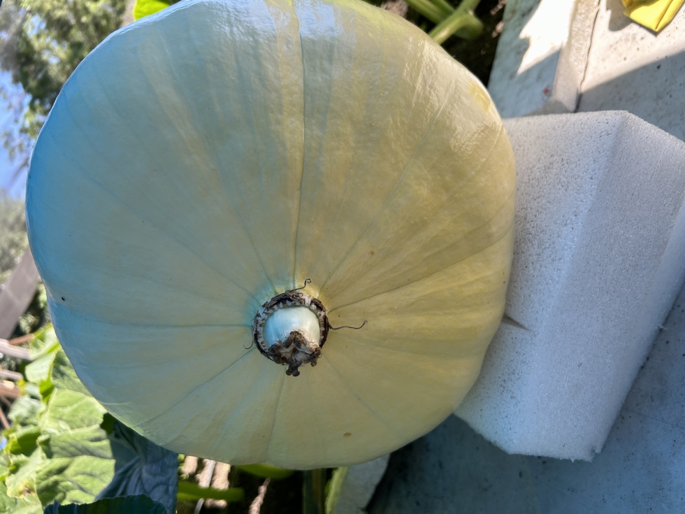 My 2287 Sadiq fruit is going to be wheel shaped. I'm not a fan of wheel shaped fruit because they usually blossom end split on me. If you look carefully at this pic you can almost see the dividing line between the thin blossom end and the thicker shoulders. This pic scares the heck out of me. I grew one once on a pallet with the stem down & it made it to the end. I'll see if I can find a pic of it.