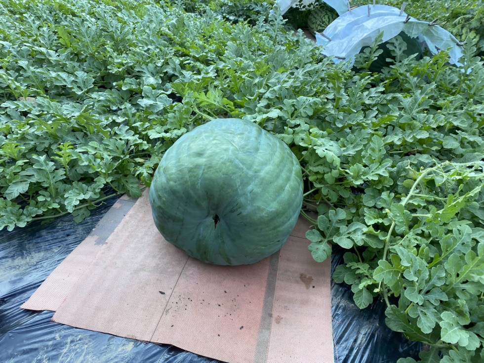 This is the 159.6 Ciesielski black diamond. This is the first thing that has gone wrong with my melons so far. this nice young got a blossom end split. Fortunately, I did keep two melons on this plant so there's still another one that has lots of potential. hopefully it can hold together.
