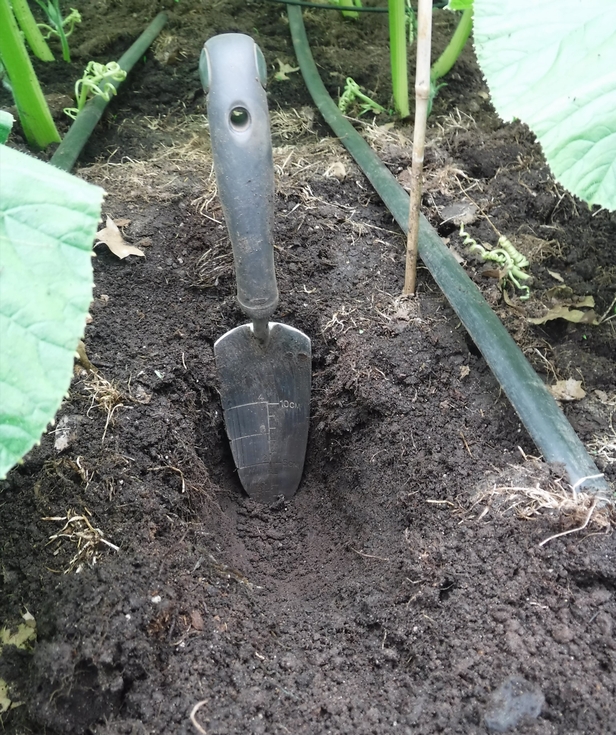 Since three soil moisture sensors will be placed around this plant it is important that each is at the same depth so fair comparisons can be made. While the exact depth is open for some debate 6 inches (15cm) was selected as this marks a good depth of the same growing substrate/compost mix.